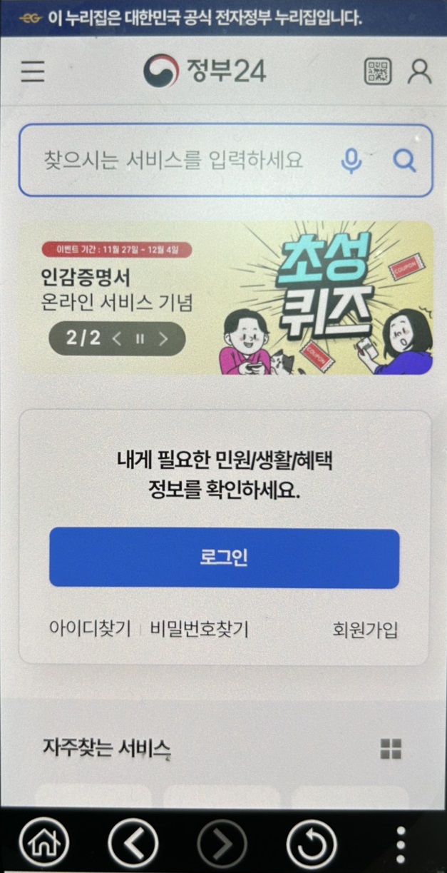 정부24 앱 또는 관련 앱을 스마트폰에 설치합니다.