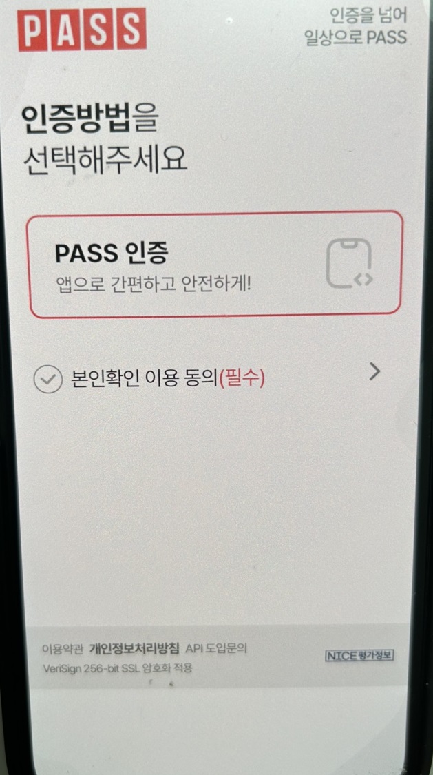 공인인증서 또는 PASS 앱 등을 이용해 본인 인증을 진행합니다.